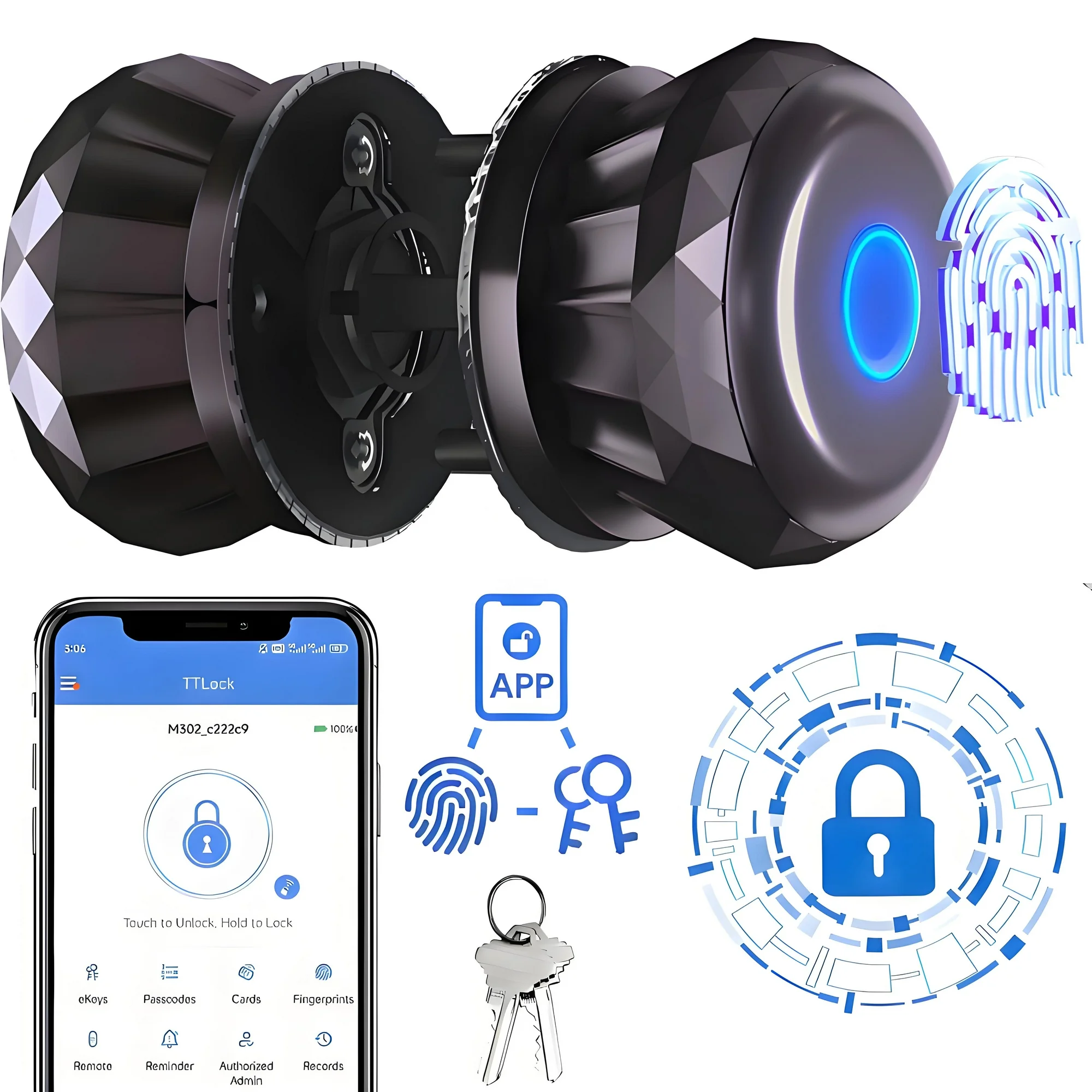 The Fingerprint Door Lock Knob with App Control combines cutting-edge technology with convenience for optimal home security. This sleek, modern lock allows you to unlock your door with a simple fingerprint scan, ensuring quick and secure access without the need for keys.